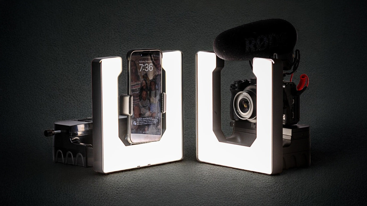 One light for phones, cameras, and tripods. No more bulky setups or gear that slows you down...and it fits in a bag.