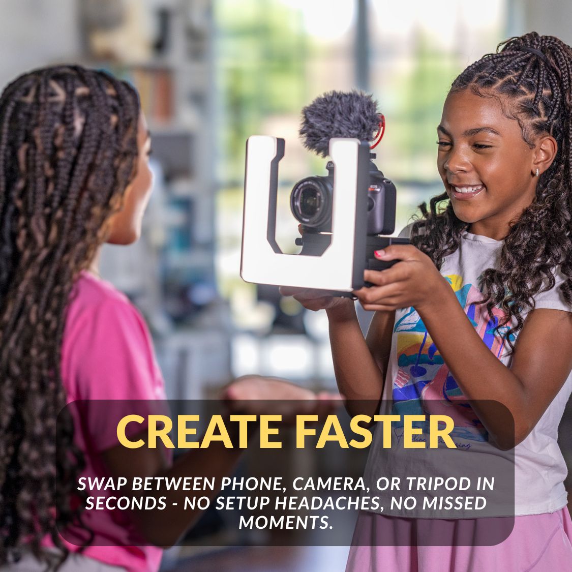 Unlike ring lights, The Ultralite offers adjustable angles, pro-grade brightness, and warm-to-cool tones, giving you complete control over your lighting.