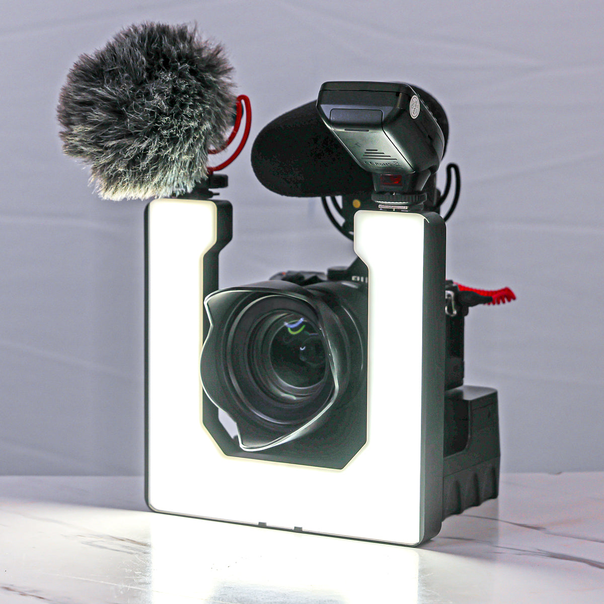 🎤 A light that keeps the camera hot shoe free for your mic